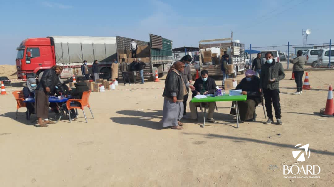 فريق شركة بورد يقوم بتوزيع الكاش في احد مخيمات النازحين بتعاون مع شركة الغانم لتوزيع مادة الكيروسين للنازحين او للاجئين 24/1/2017